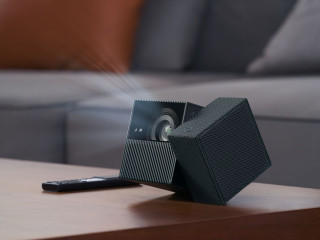 Díky otočnému závěsu s integrovaným madlem lze projekci snadno nasměrovat tam, kam uživatelé potřebují – na stěnu, pod úhlem nahoru nebo třeba přímo na strop. Zobrazení se koriguje automaticky a v řádu vteřin. Ozvučení zajistí 8W reproduktor s technologií Dolby Audio.