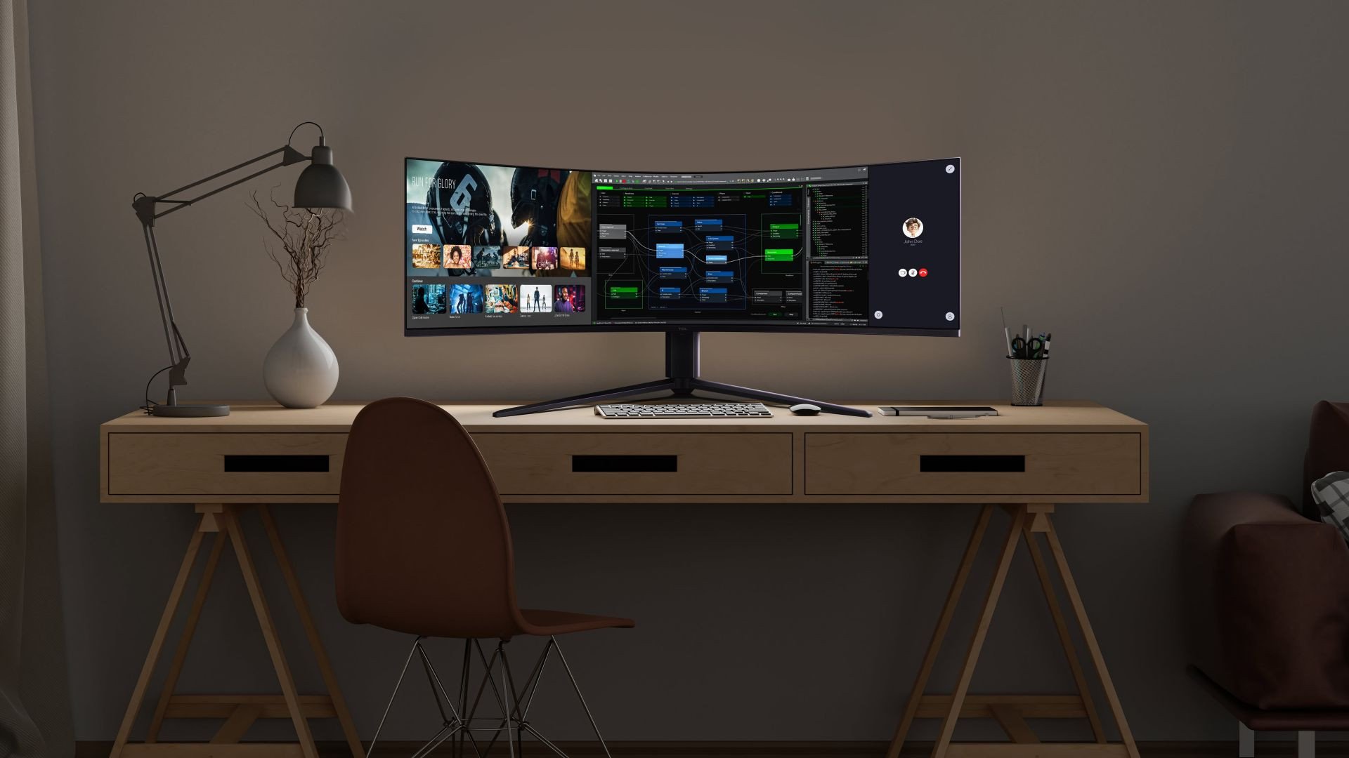 TCL 57R94 je navržený pro maximální pohlcení, ať jde o použití v závodních hrách nebo při práci s daty v rozsáhlých tabulkách. Díky 1000R zakřivení, ultraširokému poměru stran 32:9 a Dual 4K (7 680 × 2 160) rozlišení zaplňuje obraz celé zorné pole – velikostí odpovídá dvěma 32“ 4K monitorům vedle sebe, jen bez rušivých rámečků mezi displeji. Výsledkem je panoramatické zobrazení vhodné nejen pro hraní, ale také pro streamování, pracovní produktivitu a multitasking.