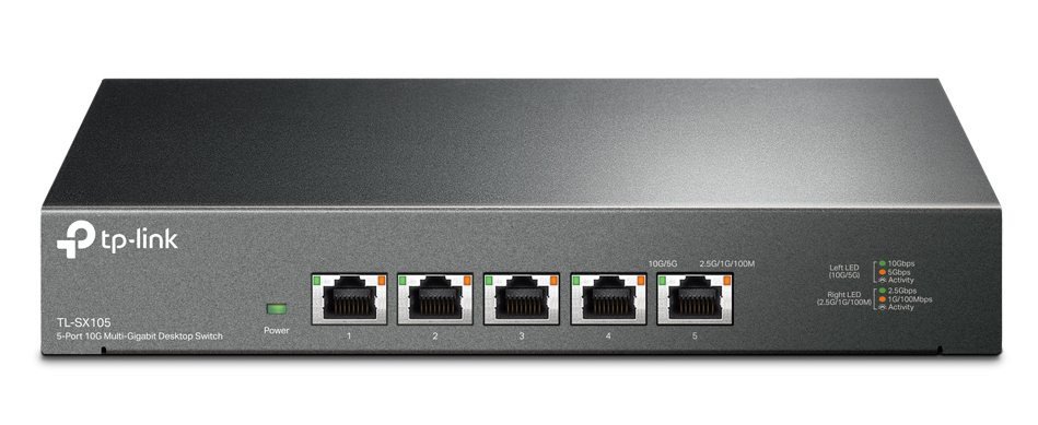 TP-Link TL-SX105 je pětiportový 10G multi-gigabitový stolní switch umožňující přejít na nejvyšší výkon 10G/Multi-Gig pásma a zařízení. Automatické nastavení rychlosti pro 100Mbps/1G/2,5G/5G/10G připojení poskytuje optimální výkon, zatímco odolné kovové pouzdro a možnost montáže na zeď jej předurčují pro mnoho různých prostředí. TL-SX105 také disponuje designem bez větráčku, který zajišťuje tichý provoz, ideální pro jakýkoliv domov či podnik. Pokud je potřeba připojit více zařízení, je k dispozici také verze s osmi porty. K dispozici jsou také nové 5/8portové switche s 2.5G porty, které jsou cenově dostupnější a zajistí taktéž multi-gigabitový výkon.