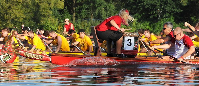 Výtečnou atmosféru třetího ročníku závodu IT dračích lodí doplnilo skvělé počasí. A tak jedenáct posádek se postupně ve dvou rozjížďkách dostalo až do finále, kdy se snažily překonat v co nejkratším čase vzdálenost 250 metrů s dvoutunovým kolosem. Dračí loď samotná má hmotnost zhruba 250 kilogramů. Posádku pak tvoří bubeník, který určuje rytmus pádlování a kormidelník. Do lodě pak nasedá osmnáct až dvacet pádlařů, kteří se snaží s lodí ujet úsek v co nejkratším čase. Podle jejich tělesné konstituce se pak hmotnost celé naložené lodi dostává i přes dvě tuny.