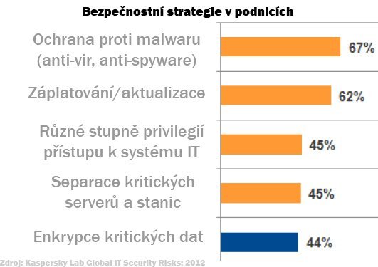 Žebříček pěti nejpoužívanějších způsobů ochrany v podnicích uzavírá enkrypce kritických informací. Ve srovnání s loňským rokem se její využití zvýšilo ze 7 % na 44 %.