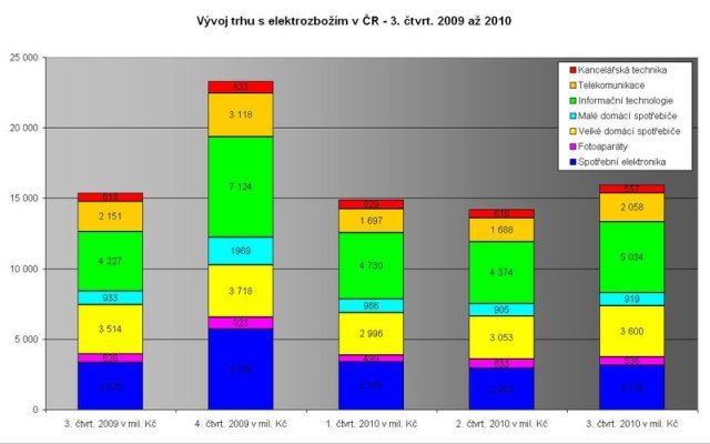 Podle výzkumu GfK Temax na trhu s technickým spotřebním zbožím v České republice došlo ke změně trendu. Celková hodnota trhu se ve třetím čtvrtletí roku 2010 meziročně zvýšila o tři a půl procenta a to hlavně zásluhou sektoru IT. K mírnému nárůstu došlo i u velkých domácích spotřebičů a fota. U ostatních sektorů zůstal vývoj negativní, ale zejména u spotřební elektroniky a telekomunikací je patrné zřetelné zpomalení poklesů těchto trhů.