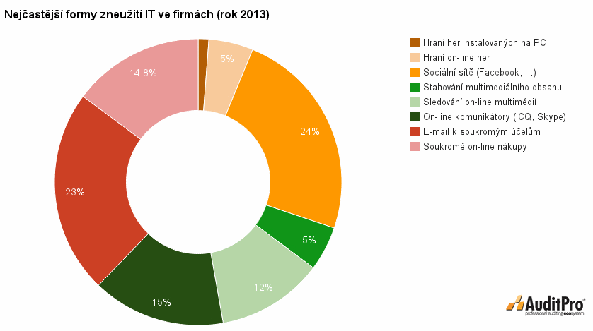Kde více, než ve firmách by mělo platit, že čas jsou peníze. Převedeno do průměrné hrubé měsíční mzdy jednoho zaměstnance v roce 2013, zaměstnavatel za vyřizování jeho soukromých záležitostí z firemního počítače denně tratil 124,7 Kč: „Za měsíc to v průměru představuje 2 618 Kč a za celý loňský rok 31 424 Kč. Tyto částky vynaložily firmy na mzdových prostředcích, aniž by byly podloženy reálnou prací. Ročně je tato částka tedy o více než 6 000 Kč vyšší, než byl v loňském roce průměrný měsíční plat v České republice,“ řekl Martin Hnízdil, AuditPro manažer ze společnosti TruconneXion.