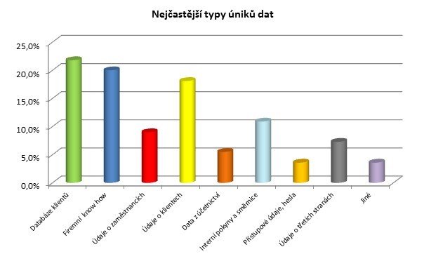 Únik citlivých firemních dat může napáchat škody až do výše několika milionů korun. Podle průzkumu firmy Safetica se odhadované ztráty vyšplhaly v asi pětině případů až na šesticiferná čísla. Ve více než polovině případů stojí za únikem dat zaměstnanec.