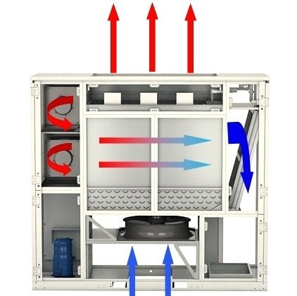 Vzduch z IT zařízení se ve venkovním prostředí ochladí a vrátí se do datového centra zvýšenou podlahou nebo difuzory studené uličky. Dovnitř je vháněn děrovanými dlaždicemi před serverovými stojany a využívá se k udržení serverů v bezpečné provozní teplotě. Ohřátý (horký) vzduch ze serverů je kontrolován pomocí obvodů napojených na stojany a stoupá ke stropu, kde je nasáván do vratného potrubního vedení EcoBreeze. Po zpětném ochlazení se opět vrátí do datového centra difuzory studené uličky.