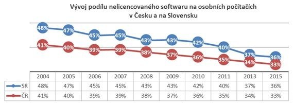 Studie nazvaná Příležitosti v licencování softwaru zjistila, že v České republice podíl nelicencovaného softwaru instalovaného v počítačích představuje 33 %. To je o procentní bod méně, než při předchozím měřením v roce 2013. Na studii spolupracovala BSA s analytickou společnosti IDC. Studie hodnotí trendy v užívání počítačů a softwaru na 116 trzích v roce 2015.