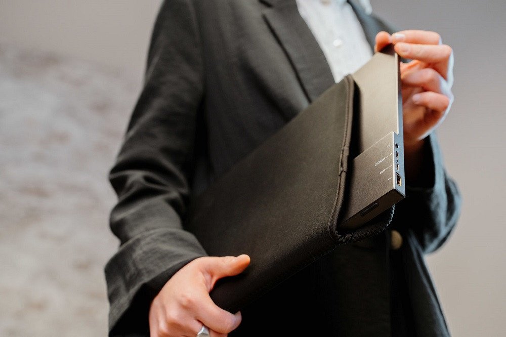 Součástí balení jsou všechny potřebné kabely, včetně jednoho kabelu USB-C na USB-C, jednoho kabelu USB-A na USB-C a jednoho kabelu HDMI na HDMI. Kromě toho je součástí dodávky napájecí adaptér se zástrčkou pro EU a Spojené království (pro volitelné přídavné napájení) a také neoprenové ochranné pouzdro, které zajistí ochranu před poškrábáním a poškozením během přepravy.