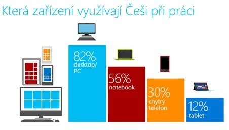 Využívání cloudových technologií nahrává mimo jiné také využívání vícero různých zařízení. Lidé totiž čím dál častěji pracují nejen na počítači (82 % českých zaměstnanců) či notebooku (56 %), ale používají také chytré telefony (30 %) či tablety (12 %). „Jakmile lidé používají více různých zařízení současně, cloud jim práci podstatně zjednoduší, protože automaticky synchronizuje soubory. Rozepíšu-li tedy například dokument v počítači, mohu na něm pak později pracovat třeba z chytrého telefonu nebo tabletu,“ dodal Ondřej Novodvorský.