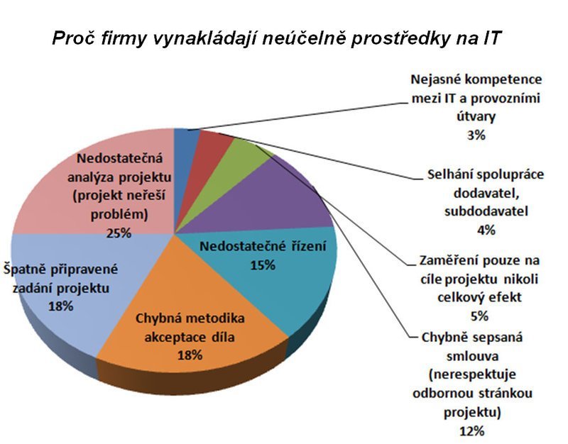 Soukromý sektor je sice schopen si své investice lépe ohlídat, ale i tam dochází často k mrhání. „Viníkem prodražení je nejčastěji podcenění strategie a důsledné analýzy projektu. Klienti se mnohdy při revizi smluv diví, k čemu se vlastně zavázali a co ze smlouvy, kterou navrhl dodavatel, vlastně vyplývá,“ dodává Ivan Janoušek. Mnoho manažerů navíc podléhá klamu, že nový informační systém jim vyřeší špatný systém řízení firmy. „Předpoklad, že zavedení světového informačního systému přinese do firmy samozřejmě i světový systém řízení, je naprosto mylný,“ varuje Janoušek.