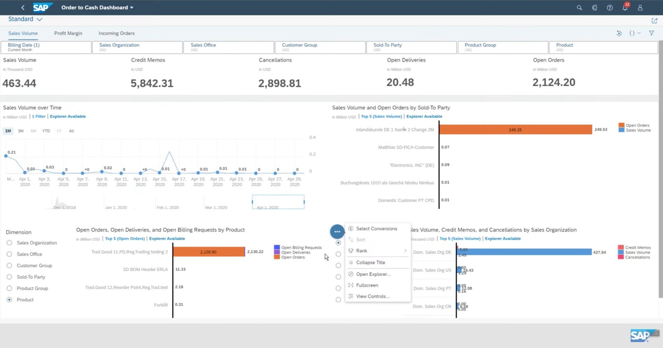 Nový řídicí panel usnadňuje sledování objemu prodejů, objednávek i ziskových marží, stejně jako související reporting. Finanční týmy mají k dispozici pokročilé řízení plateb, včetně schvalování a monitoringu plateb z SAP i jiných systémů. Vše je hladce integrováno se správou hotovosti a bankovních účtů. Výsledkem je lepší viditelnost finančních toků, možnost sledovat veškeré finance podniku z jediného místa a vylepšení prognóz. V turbulentní ekonomice mají takové informace pro finanční ředitele klíčový význam.