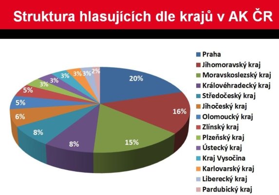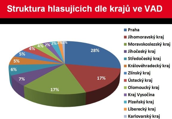 Největší počet hlasujících pocházel z Prahy (20 %), mezi další nejvíce zastoupené kraje patřily Jihomoravský kraj (16 %) a Moravskoslezský kraj (15 %).
