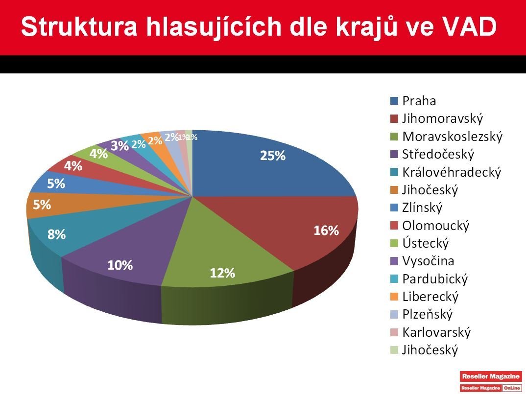 Struktura hlasujících v kategorii Value Added Distributor kopíruje strukturu hlasujících z Absolutní kategorie – mezi kraji dominovala Praha (25 %) následovaná Jihomoravským krajem (16 %) a Moravskoslezským krajem (12 %).