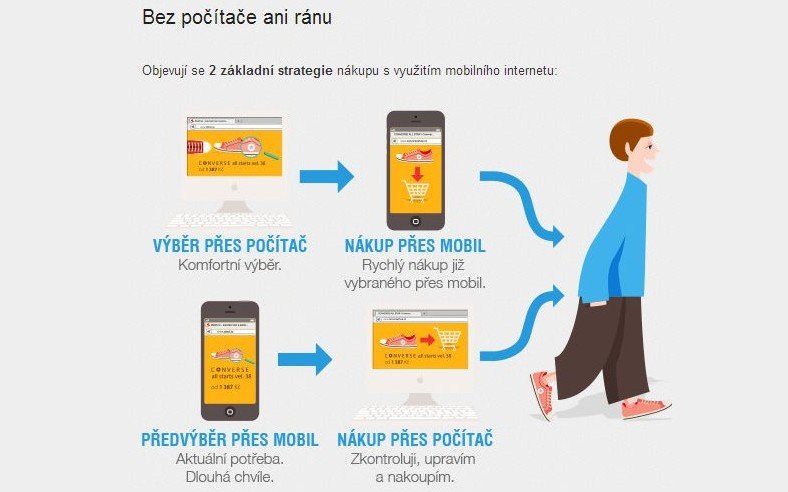40 % uživatelů mobilního internetu se k mobilu obrací přímo při nákupu v obchodě. Mezi smartphonisty pak celá polovina. Častěji tak činí muži. Hlavně při dražších nákupech.