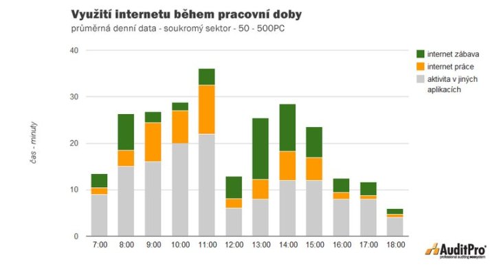 Pracovní morálka zaměstnanců sice pod vlivem tvrdších podmínek na trhu práce doznala v posledních dvou letech změn k lepšímu, ale stále ještě vykazuje rezervy. Je to patrné ze snímku pracovního času, který na základě výstupů nástroje na monitorování zaměstnanců AuditPro připravila technologická společnost TruconneXion. Ze sledování využití počítačů u dvou set českých firem v průběhu denní pracovní doby vyplývá, že nejnáchylnější ke zneužívání počítačů jsou zaměstnanci po návratu z oběda mezi 13. a 14. hodinou.