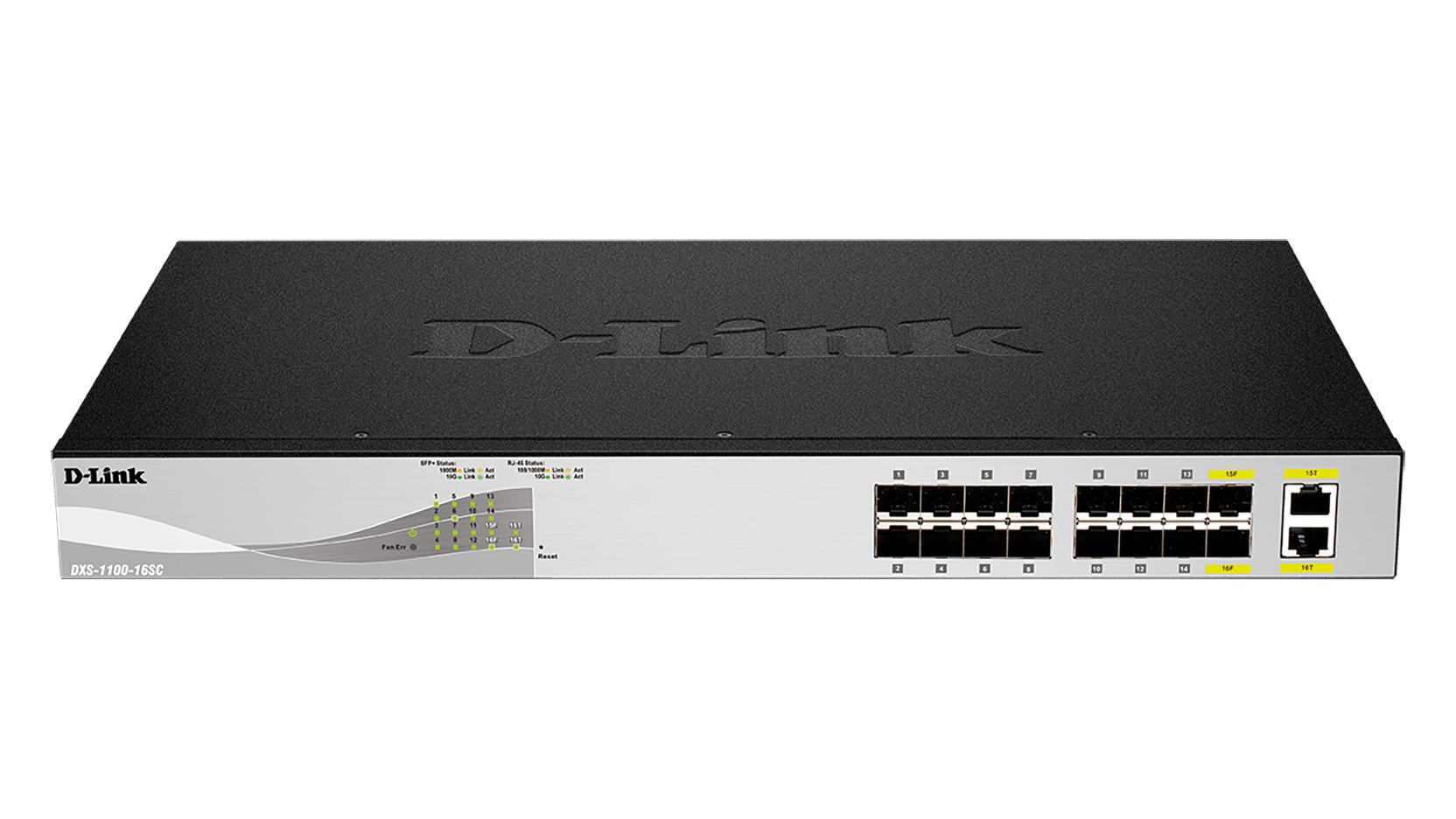 D-Link uvádí na trh novou sérii 10GbE Smart přepínačů DXS-1100 určenou především pro malé a střední firmy. Model DXS-1100-10TS je osazen 8 metalickými porty 10GBase-T RJ-45 a dvěma 10G SFP+ sloty pro optické transceivery. Model DXS-1100-16SC nabízí 14 slotů 10G SFP+ a dva 10G Combo porty 10GBase-T RJ-45 / SFP+. Všechny SFP+ sloty jsou dvourychlostní, kromě 10G SFP+ podporují i Gigabit SFP (mini-GBIC) transceivery.