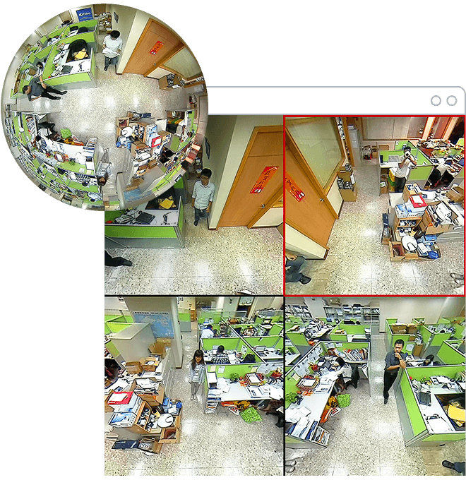 Vnitřní profesionální IP kamera D-Link DCS-4625 ze série Vigilance vám poskytne 360° pokrytí, které zachytí opravdu vše. S objektivem rybího oka (f=1.37mm, F2.0), snímačem o velikosti 1/1,25“, s 5Mpx rozlišením (2560x1920@30fps) a korekcí zkreslení je ideálním řešením pro sledování velkých ploch jednou kamerou, jako jsou vstupní haly, prodejny, restaurace nebo kanceláře.