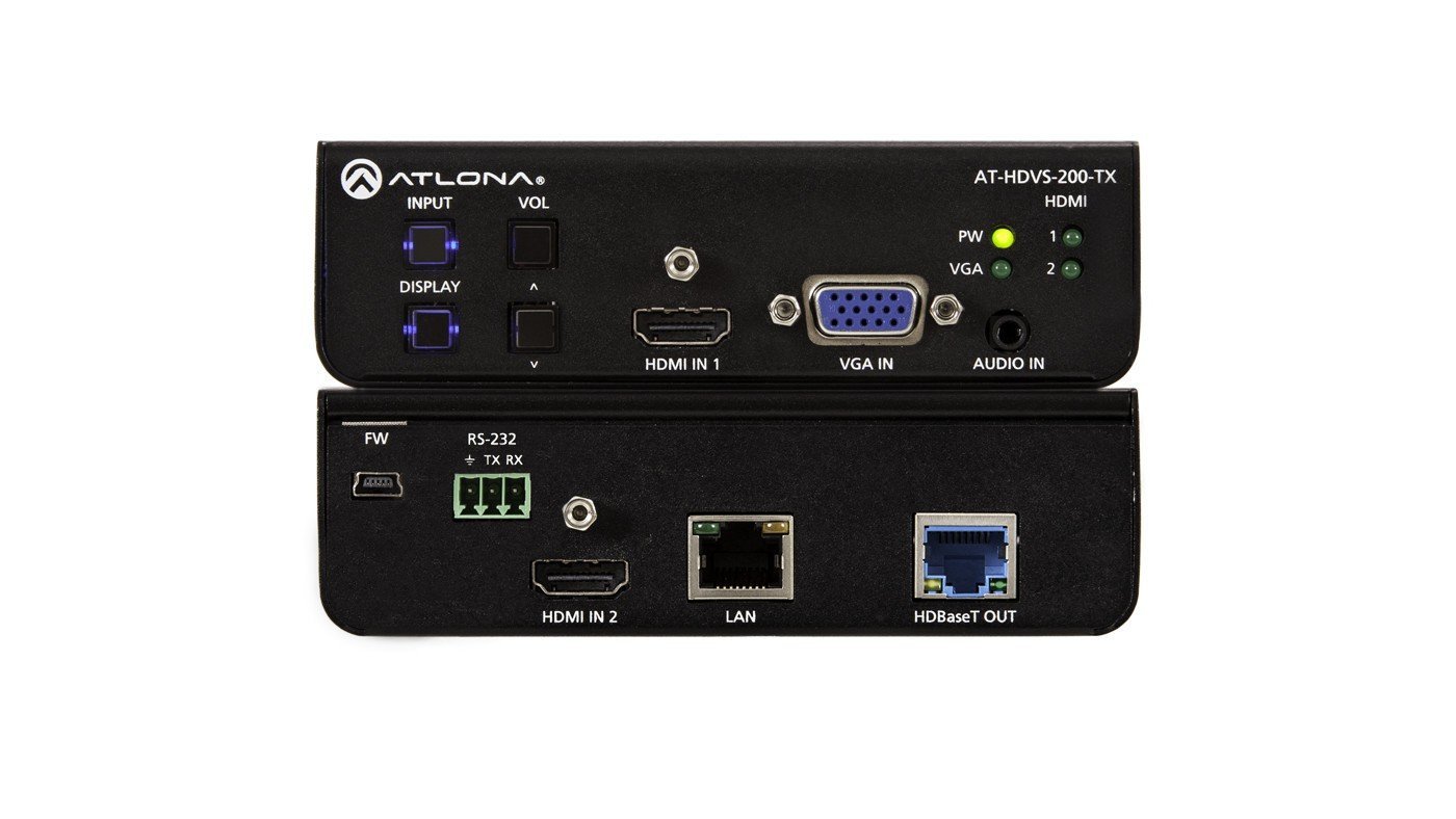 AT-HDVS-200-TX přepínač nabízí dva HDMI vstupy a jeden VGA vstup s 3,5 mm audio konektorem a přenáší video signály v rozlišení až 4K/UHD/60 Hz se zabudovaným audiem až do vzdálenosti 100 metrů. Může být použit jako vstupní zařízení s několika maticovými přepínači Atlona, např. AT-UHD-CLSO-824, což umožní, aby jeden HDBaseT vstup maticového přepínače spravoval až tři automaticky přepínatelné zdroje.