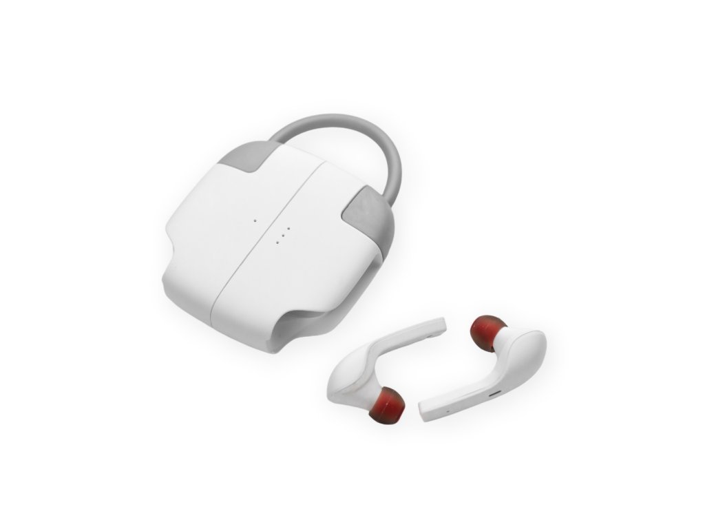 K dispozici jsou v bílo-šedé, ale i růžové, čistě bílé nebo šedé barvě, případně kombinace těchto barev, jak si budete přát. Přes BlueTooth 5.0 se dají propojit s jakýmkoliv chytrým telefonem. Nabíjecí kabel microUSB / USB-A slouží zároveň jako poutko na klíče.