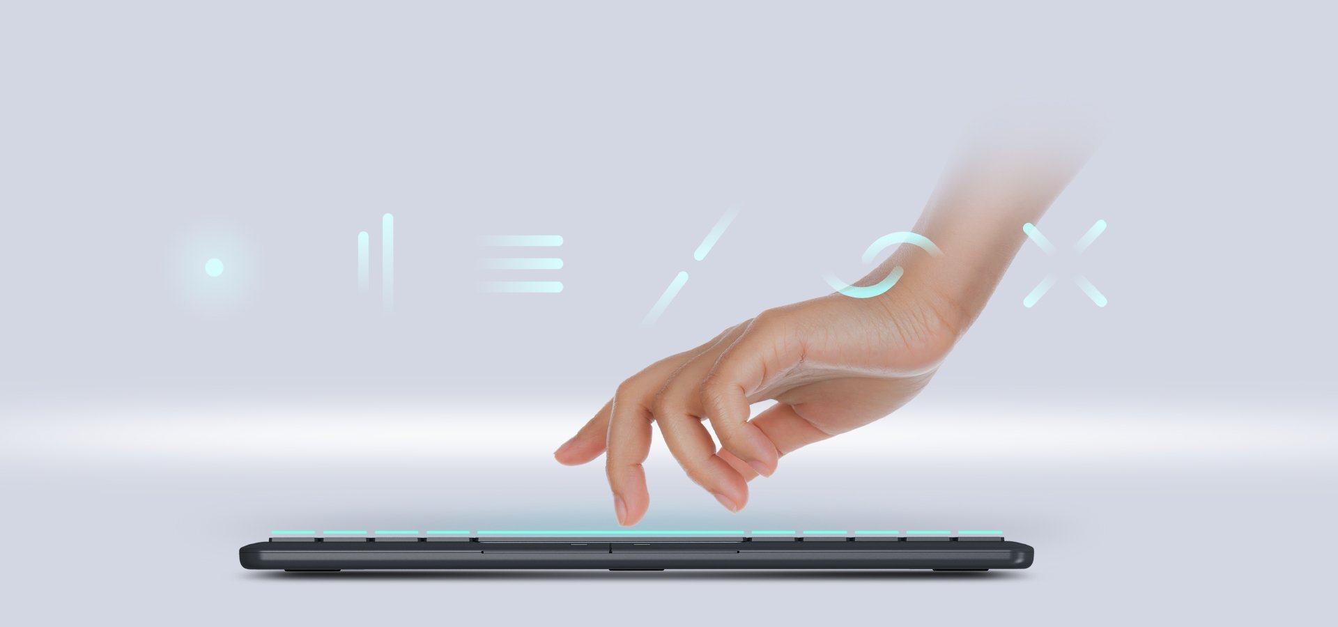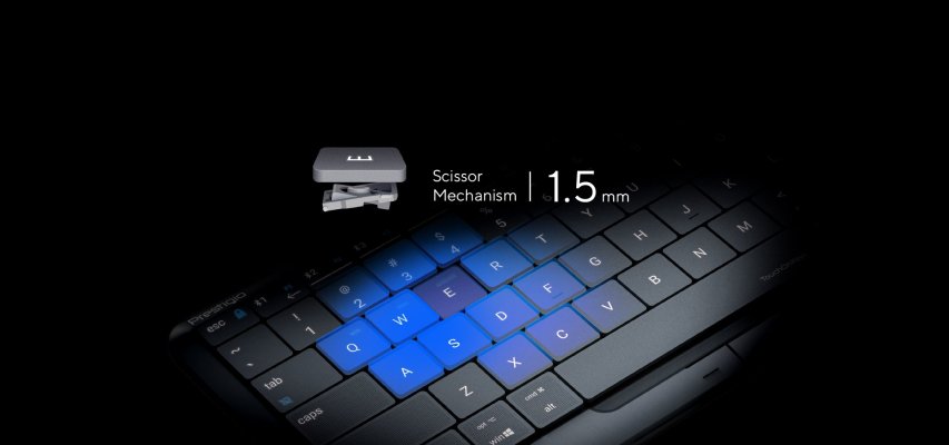 Technologie TouchOnKeysTM obohacuje možnosti tradičních klávesnic přidáním funkce touchpadu. Nyní lze ovládání gesty, včetně posunu zobrazení, pohybu kurzoru a psaní, k němuž byl dříve potřeba samostatný touchpad, provádět kdekoliv na povrchu klávesnice. Systém intuitivně rozpoznává, co chce uživatel dělat, a automaticky přepíná mezi režimy klávesnice a touchpadu.