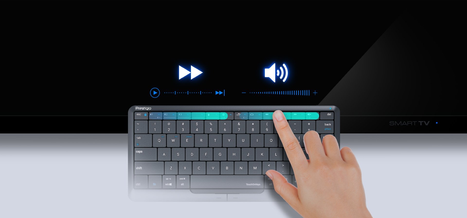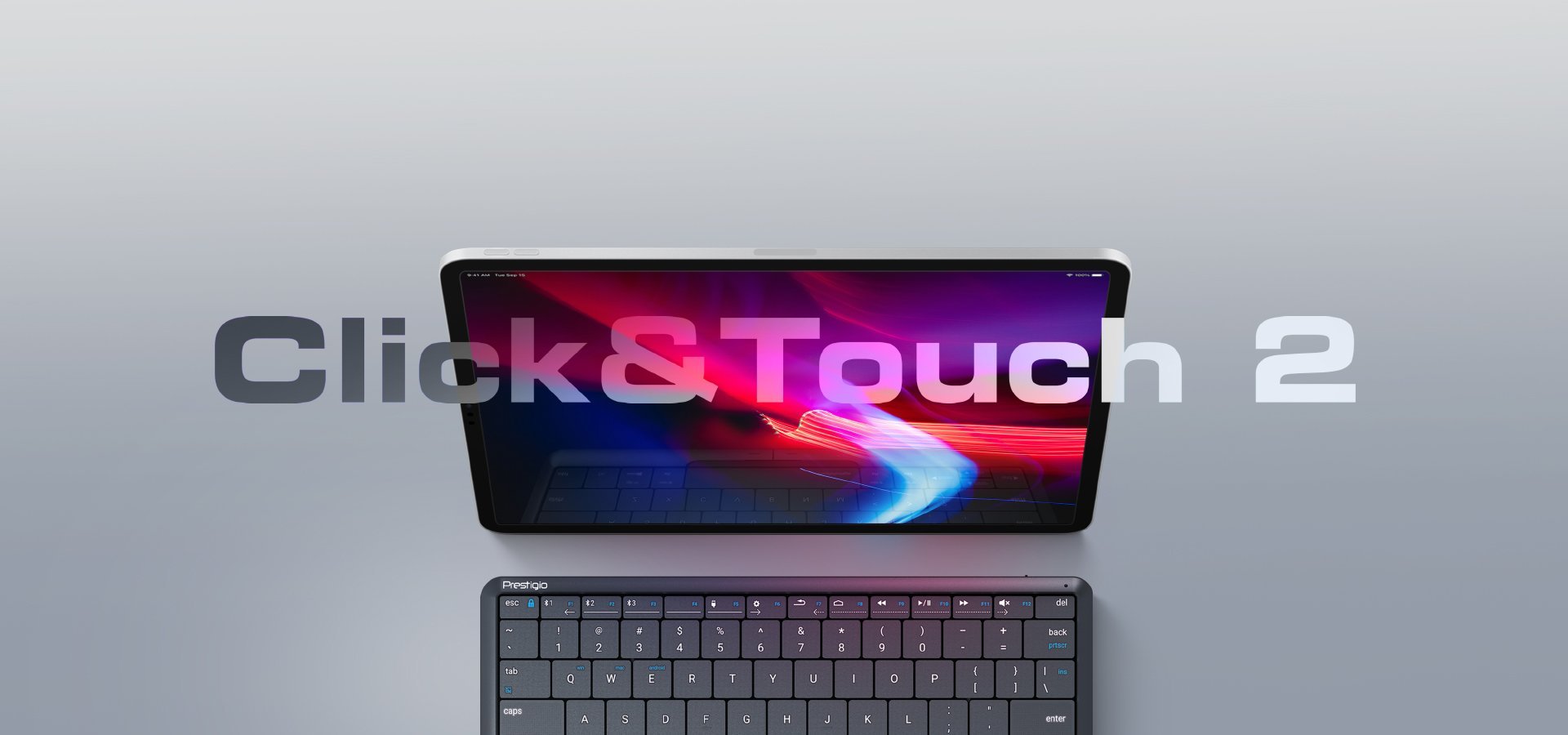 Prestigio Click&Touch 2 kombinuje klávesnici s fyzickými tlačítky a dotykovými posuvníky, touchpad i počítačová myš. Dá se připojit k jakémukoliv zařízení od tabletu přes smartphone, počítač, chytrou TV, herní konzoli až po interaktivní panel. Toto je již druhá generace multimediální klávesnice od společnosti Prestigio. Model z první generace také získal ocenění na festivalu Red Dot Design Awards 2020, a to rovnou ve 4 nominacích současně!