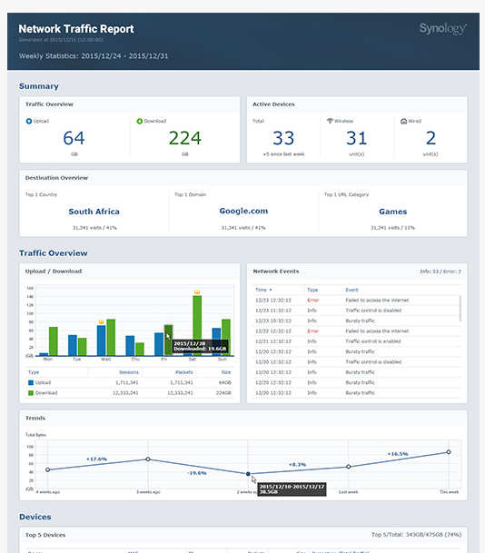 Společnost Synology® představuje zařízení Synology Router RT2600ac. Wi-Fi se skvělou rychlostí až 2,53 Gb/s v kombinaci s bezdrátovým připojením na vylepšení vaší sítě. RT2600ac je výkonný bezdrátový router pro domácnosti a malé firmy na lepší práci i zábavu, obsahuje komplexní VPN systémy, vyšší zabezpečení a možnost flexibilního sdílení médií i souborů.
