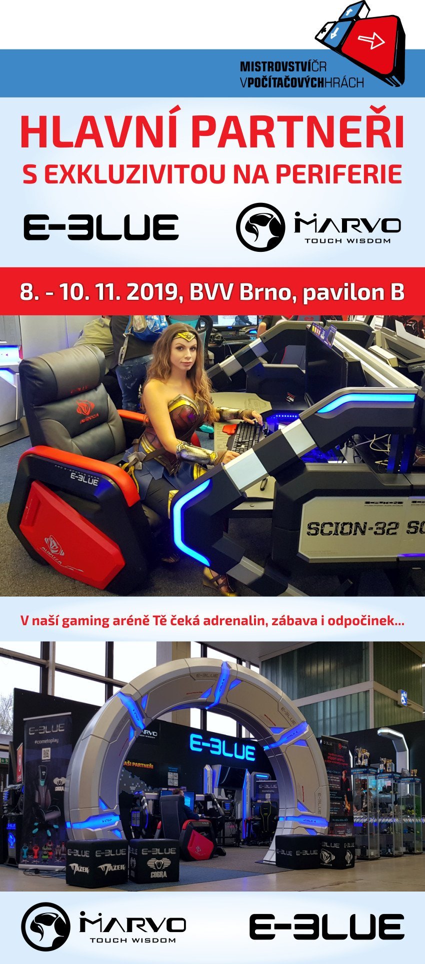 Pro letošní rok se stávají značky E-Blue a Marvo opět hlavním partnerem s exkluzivitou na periferie na Mistrovství ČR v počítačových a mobilních hrách. Tato největší událost gamingového světa ČR se jako každoročně bude konat na brněnském výstavišti, a to v období 8. – 10.11.2019.