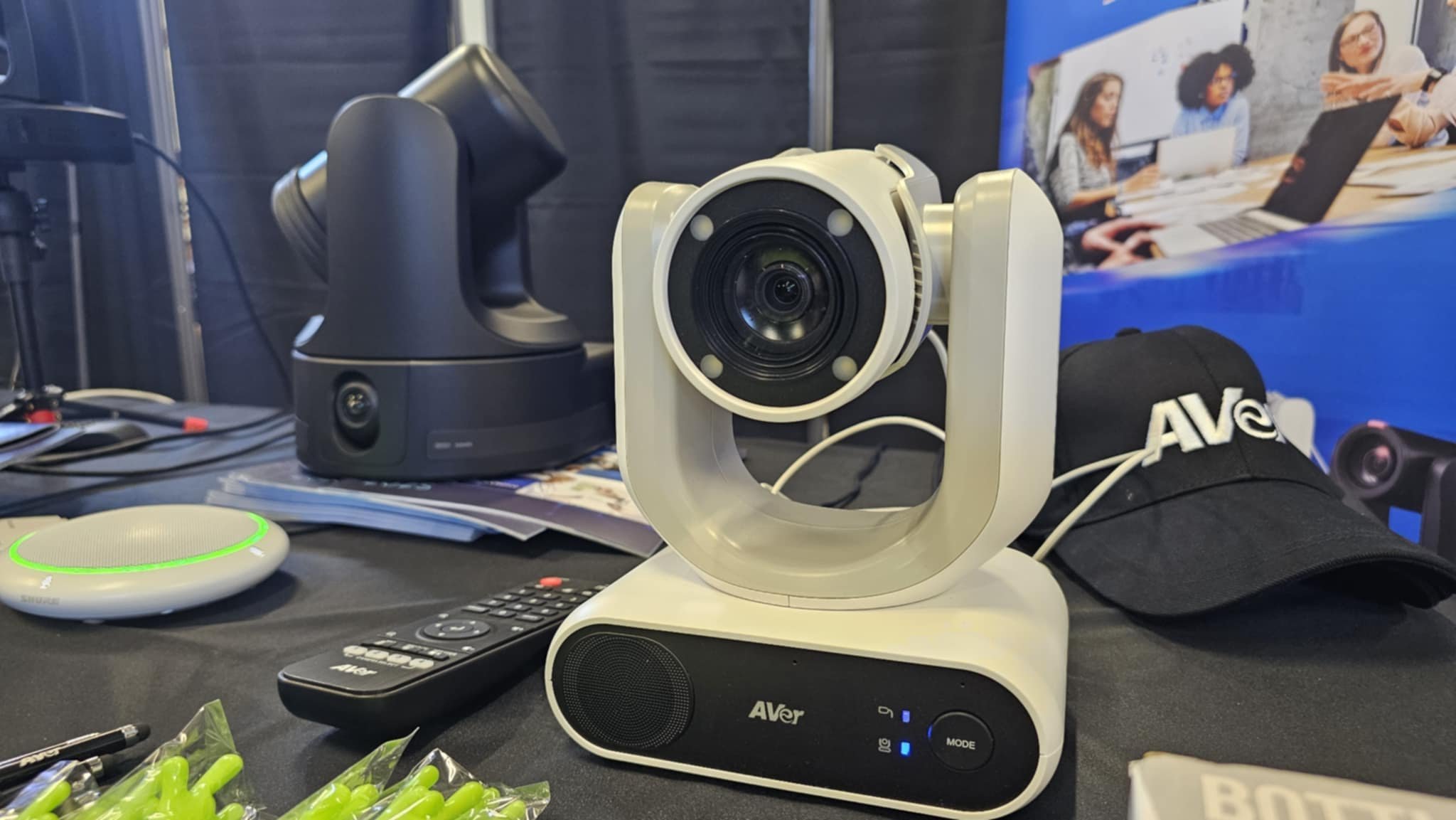 Zájem vzbudily také nejnovější modely PTZ kamer značky Aver, které jsou určené pro video konference, ale používají se například i ve zdravotnictví. Hodně populární jsou např. na veterinárních klinikách. Umožňují totiž přiblížit sledované místo, zvětšit ho a přispět tak k lepší orientaci chirurga při zdravotnickém zákroku. Kamery jsou fixní s dálkovým ovládáním a zoomem, ale některé lze dokonce vytáhnout z pevného umístění a používat je mobilně v perimetru, kam až to umožní jejich kabel. Zástupci Averu na akci předvedli funkce kamer v praxi a obraz promítali přímo na prezentované monitory.