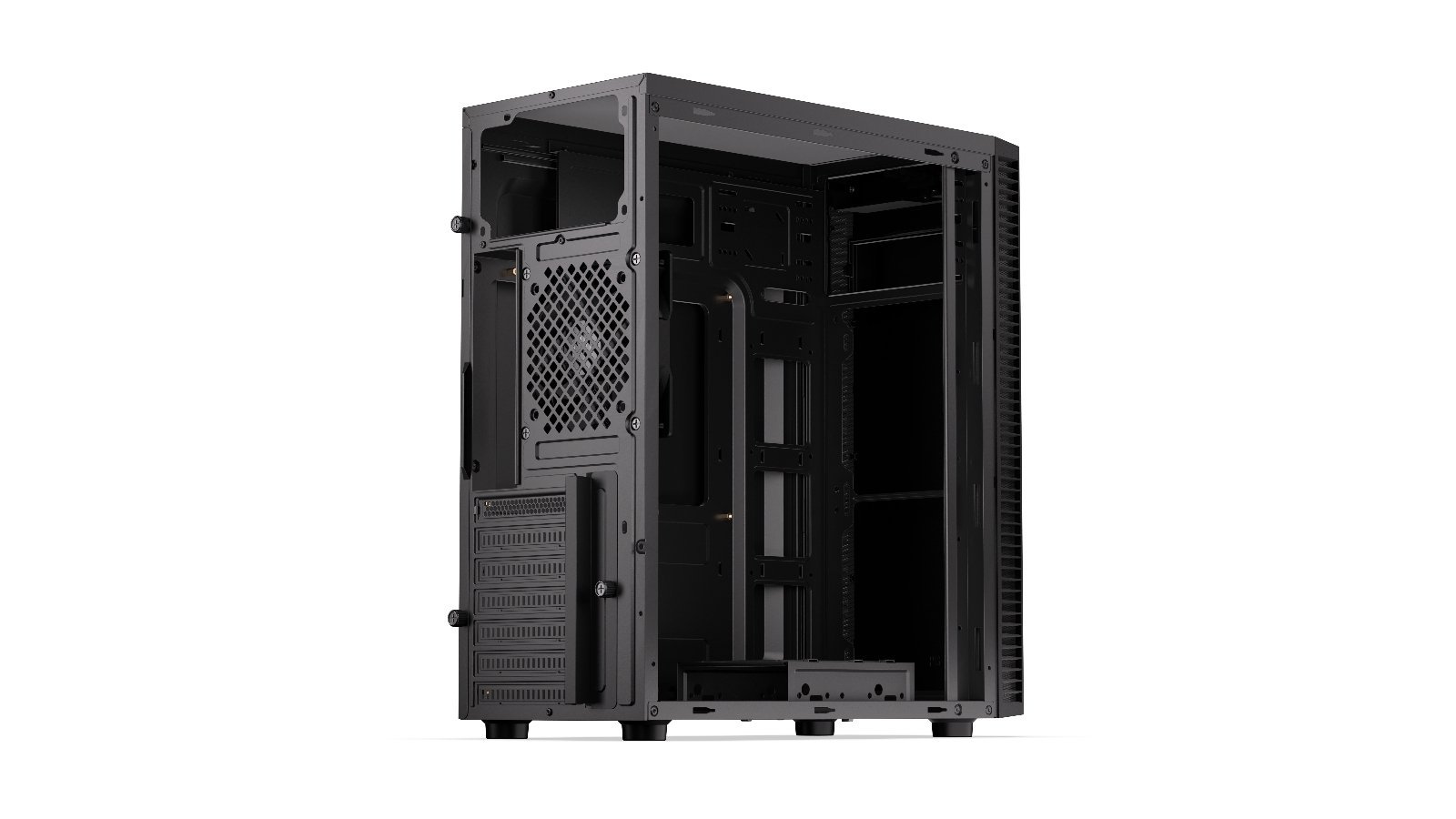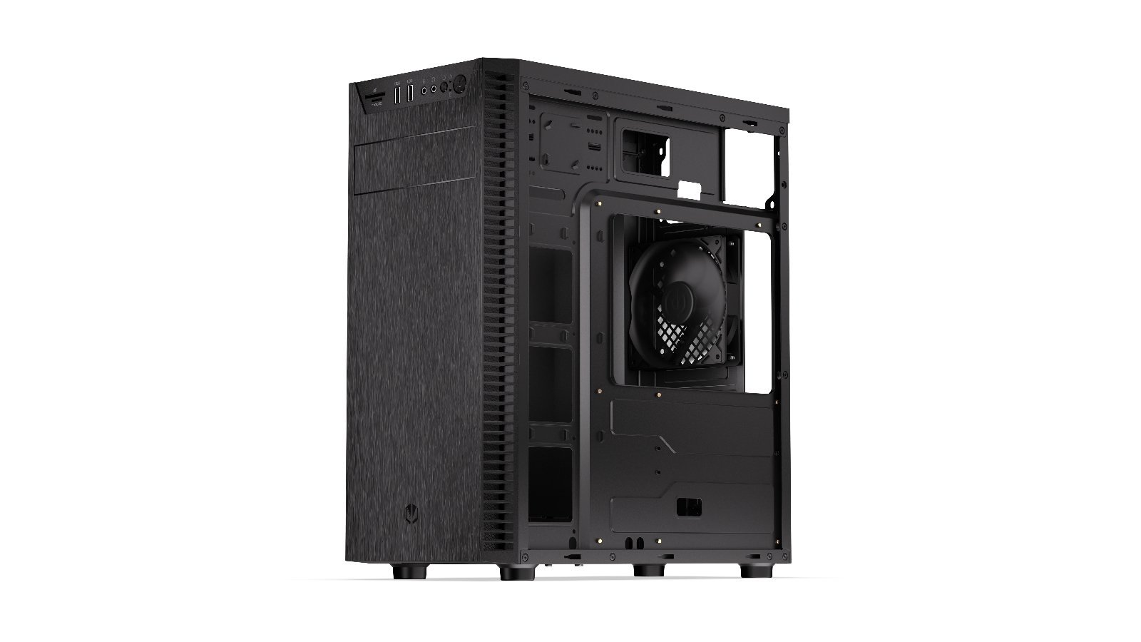 Kompaktní PC skříň Armis 100 Solid je kompatibilní se základními deskami formátu ATX a menšími. Jeho kompaktní velikost v kombinaci s 2,5”/3,5” pozicemi a extra ochranou proti neoprávněnému přístupu dělá z naší PC skříně perfektní kancelářský doplněk nebo základnu pro stavbu osobního počítače. Klasický design Armis 100 Solid obsahuje nahoře umístěný PSU slot, externí 5,25” ODD pozici a tři sloty pro ventilátor – včetně jednoho předinstalovaného ventilátoru Stratus 120 PWM.