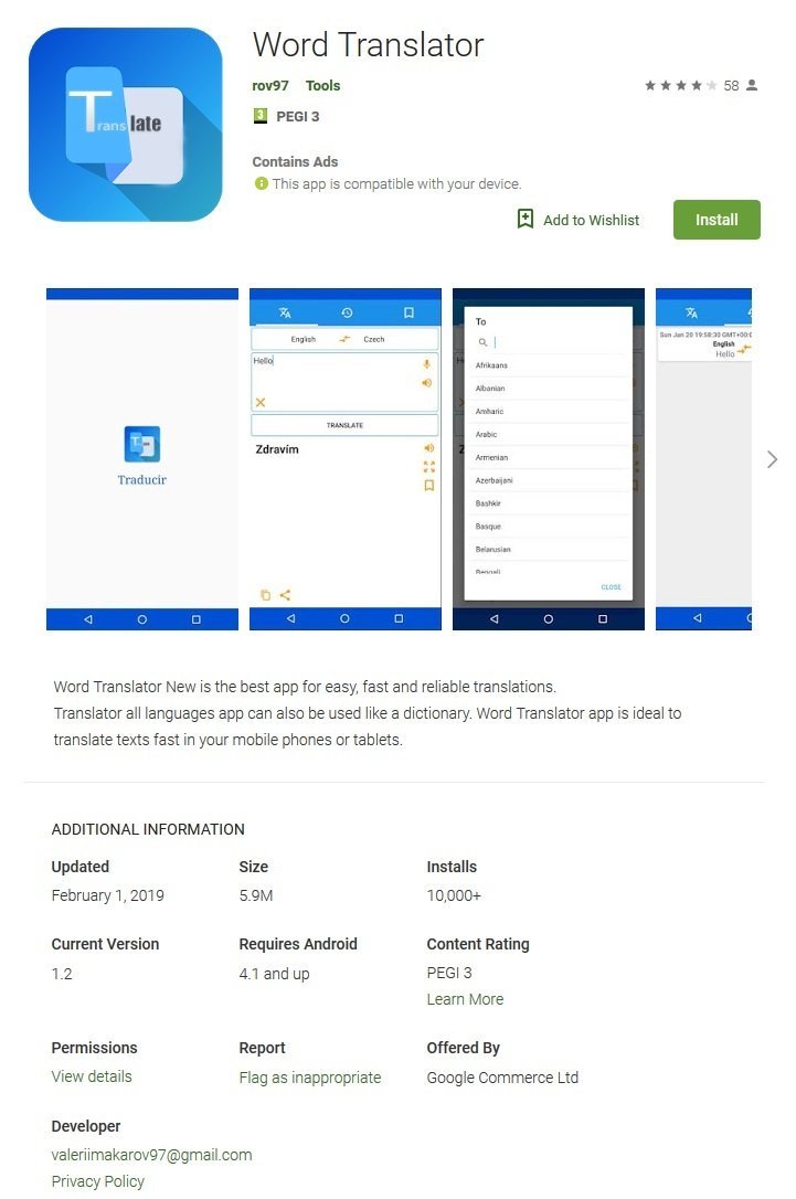 „Podařilo se nám zachytit nástroj, jehož oficiální funkcí mělo být překládání textu. Na základě naší interní analýzy můžeme říci, že původně legitimní aplikace byla v průběhu času opět tzv. ztrojanizována. To znamená, že se po některé z jejich aktualizací stal z aplikace World Translator tzv. trojský kůň,“ říká Miroslav Dvořák, technický ředitel české pobočky společnosti ESET. „Onen tzv. trojský kůň umožňuje útočníkům stáhnout do chytrého telefonu s operačním systémem Android nebezpečný obsah, což se také dělo. Celý scénář je totožný s podvodnou aplikací QRecorder či Blockers call 2019,“ dodává Dvořák.