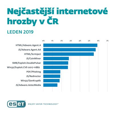Nejčastější internetové hrozby v České republice za leden 2019: