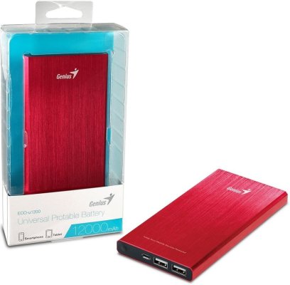 Genius ECO-u1200 je záložním zdrojem vhodným pro dobíjení jednoho nebo dvou zařízení současně, a to díky dvojici výstupních USB portů. Oproti běžným 1A PowerBankám nabízí Genius ECO-u1200 proud nabíjecího výstupu 1,5 A u prvního USB portu a 2,1 A u druhého USB portu. To umožňuje snížit dobu nabíjení u mobilního telefonu i tabletu současně. Díky integrované Li-polymerové baterii s kapacitou 12 000 mAh tak uživatel prodlouží mnohonásobě dobu provozu svých mobilních zařízení. Aby se baterie PowerBanky s takto vysokou kapacitou nabíjela co nejkratší dobu, je model ECO-u1200 vybaven microUSB vstupem pro nabíjení s podporou nabíjecího proudu 2A.
