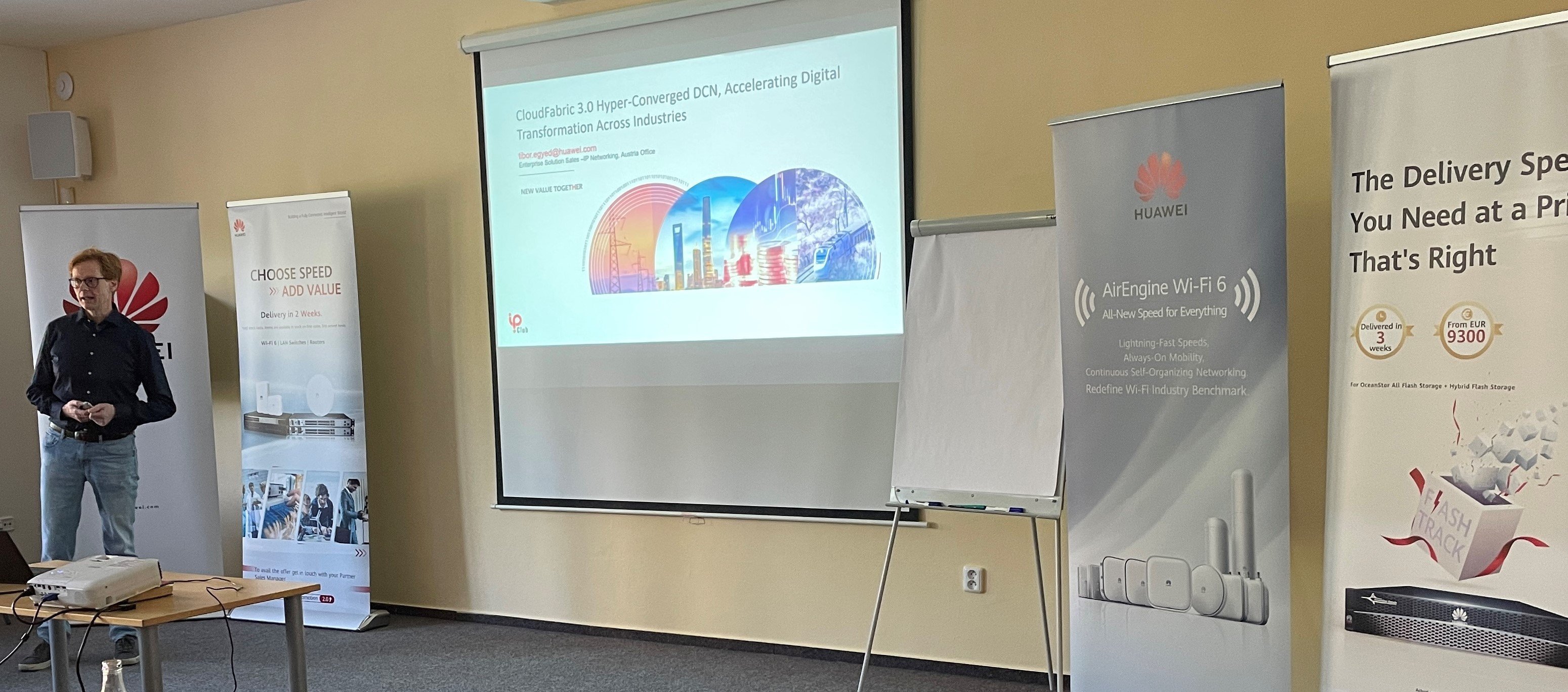 Ve čtvrtek probíhaly odborné prezentace a pracovní diskuse. Huawei Senior IP Solution Architecture Petr Klusoň představil možnosti řešení CloudCampus. O zkušenosti z implementace NCE CloudCampus in SPIE se podělil Pavol Závacký ze slovenské WDS. Tibor Egyed, Enterprise Solution Sales prezentoval CloudFabric R21C10, atraktivní formu řešení digitální transformace napříč průmyslovými odvětvími.