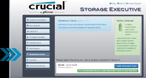 Celý „trik“ spočívá v tom, že se využijí volné prostředky operační paměti ke zvýšení výkonu SSD, který už nebude limitován propustností SATA sběrnice. Po aktivaci si Momentum Cache vezme jednu čtvrtinu volné operační paměti (maximálně však 4 GB) a tu dynamicky využije jako vyrovnávací paměť v okamžiku, kdy na SSD probíhá zápis. Celou dobu si navíc software hlídá volné systémové prostředky a udržuje rovnováhu mezi kešováním disku a hladkým chodem systému, aby nebyl ovlivněn výkon celého počítače.