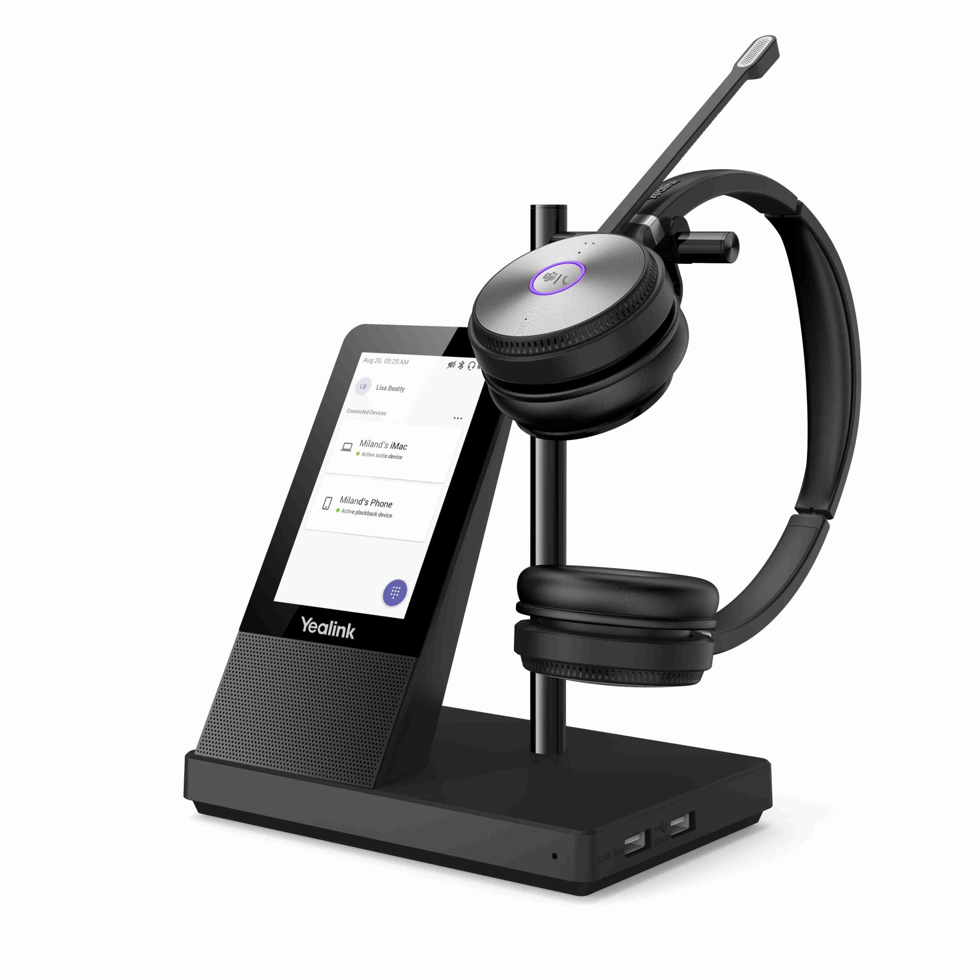 Multifunkční základnová stanice u modelů Yealink WH66 a WH67 je vybavena dotykovým displejem a nabízí příležitost pro připojení více zařízení a flexibilitu při jejich správě z jediného místa. Mimo jiné multifunkční základnová stanice v sobě integruje funkce USB hubu, plně duplexního hlasitého reproduktoru nebo stojanu na mobilní telefon s podporou bezdrátového nabíjení, díky čemuž dosáhnete komfort a úsporu místa na Vašem pracovním stole.