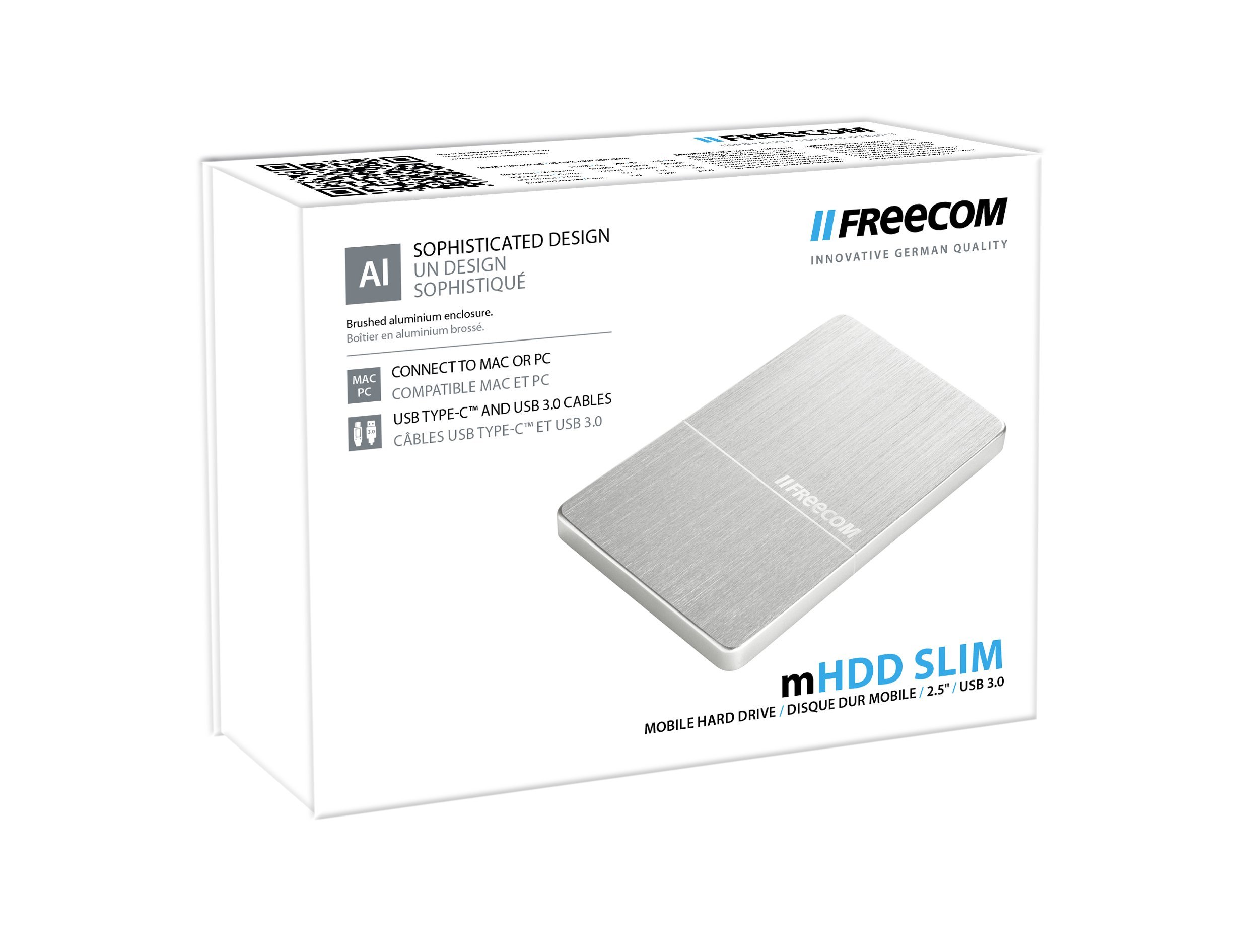 Freecom představuje mHDD Slim – kompaktní, lehký a stylový přenosný disk v odolném kovovém pouzdře, který rozšiřuje rodinu nových externích HDD a SSD disků. Navzdory kovovému pouzdru a vysokým kapacitám 2 TB a 1 TB váží disk mHDD Slim pouhých 150 gramů a se svými 0,9 cm je velmi tenký. Zákazníci, kteří zvolí 2TB model, mohou očekávat dostatek prostoru pro uložení až 4 000 filmů, 500 000 fotografií nebo 900 000 písní.