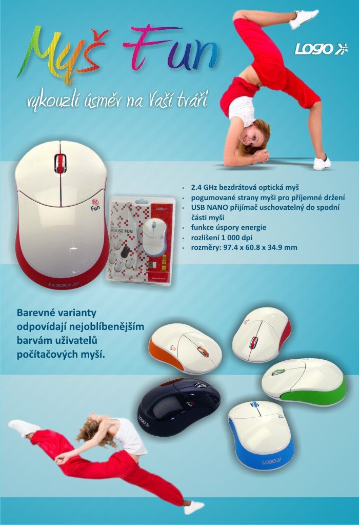 Počítačové doplňky nemusí být jen obyčejné a nudné. Bezdrátová myš Fun s originálním smajlíkem vykouzlí úsměv na vaší tváři, kdykoli se na myš podíváte.