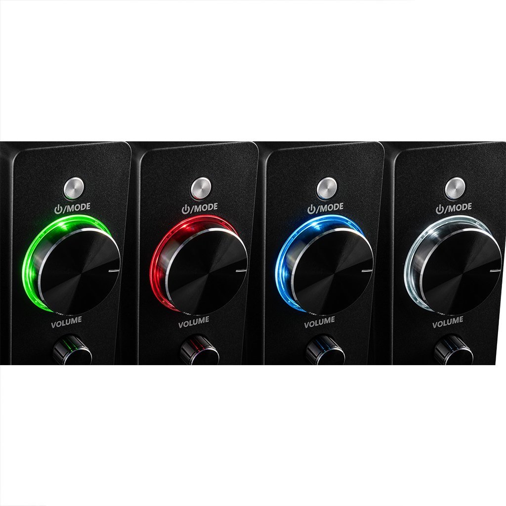 Satelitní reproduktory byly navrženy v souladu se standardem Volcano Gaming. Hráčské logo zdůrazňuje jejich hráčské použití.