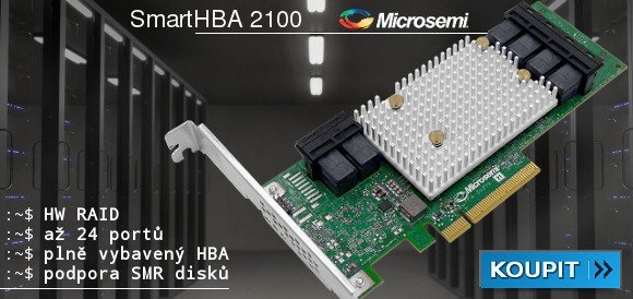 Základní externí HW řešení představuje Microsemi Adaptec SmartHBA 2100. Jedná se o kombinaci HBA (řadiče) a HW RAIDu, kde máte možnost postavit pole RAID 0, 1, 10 a 5. Je k dispozici až v 24portové variantě s širokou podporou operačních systémů včetně VMware a Xen. Samozřejmostí je podpora šindelových disků (SMR). Série 2100 nemá vlastní cache paměť, ani ochranou pomocí bateriového článku, takže kdo nechce při výpadku proudu přijít o všechna data, ten ať počítá se záložním zdrojem.