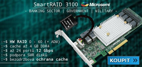 Pro firmy a náročné uživatele má Microsemi v portfoliu Adaptec SmartRAID 3100. Plně vybavený HW RAID s možností polí 0 až 60, včetně 1 a 10 ADM (Advanced Data Management je vlastnost, která umožňuje migraci dat z existujících RAID polí na nová v okamžiku, když upgradujete staré pevné disky nebo vysloužilé SSD). Dostupné jsou 4 – 24portové 12 Gbps varianty v interním nebo externím provedením, dle modelu s vlastní DDR4 cache pamětí až 4 GB a integrovaným bateriovým článkem pro ochranu cache paměti.
