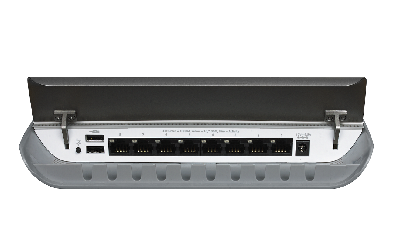 Také přepínač GS908E je vybaven osmi gigabitovými ethernetovými porty, obsahuje však i tři přednastavené módy uzpůsobené pro streaming multimédií, hraní online her a standardní připojení včetně VoIP či videohovorů. Prostřednictvím linkové agregace a port trunkingu lze vybrané porty dále vzájemně slučovat a dosahovat tak přenosové rychlosti až 4 Gb/s. Součástí výbavy zařízení jsou i dva USB porty sloužící k napájení elektronických zařízení.