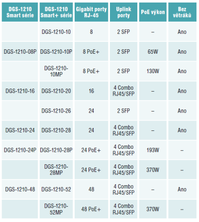 D-Link, přední výrobce síťových prvků pro domácnosti a firemní uživatele, uvádí na trh novou, již pátou generaci přepínačů Gigabit Ethernet řady DGS-1210 patřící do kategorie Smart řízených přepínačů. Série DGS-1210 je ideálním řešením pro kancelářské a podnikové sítě typu SMB a pro IP kamerové systémy. Mezi přednosti této řady patří zejména spolehlivý a bezpečný provoz sítě s jednoduchou správou.