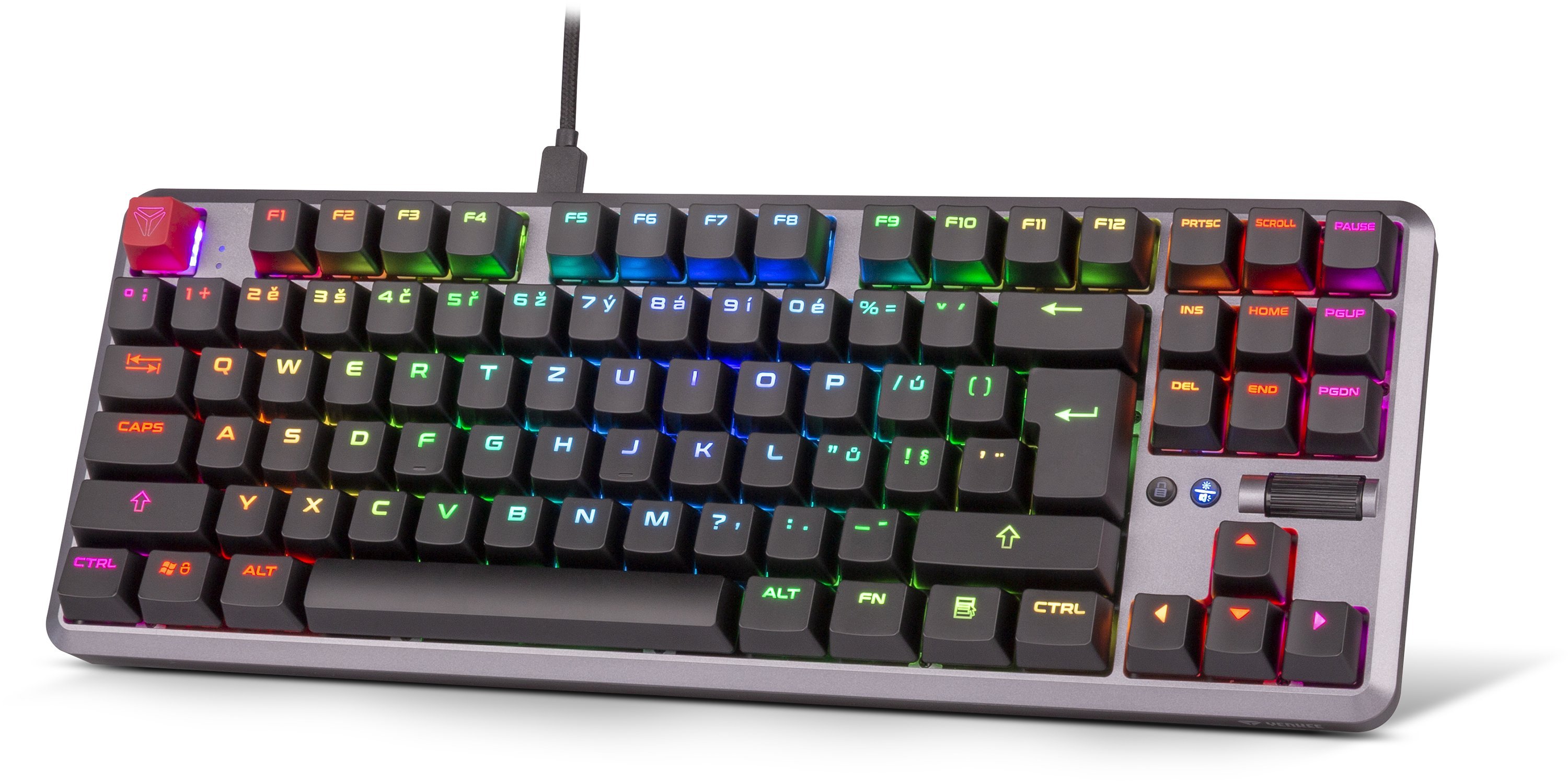 Ke klávesnici je dodáván odolný opletený kabel s moderní koncovkou USB-C, která zajišťuje nízkou odezvu klávesnice, a zároveň jednoduchou možnost jeho výměny v případě potřeby.