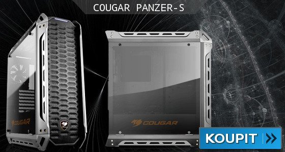 A začneme rovnou slibovanou skříní. Pokud nějaký produkt dostane v recenzi serveru TechPowerUp ocenění „Editor‘s Choice“ je potřeba zbystřit, protože se tam s nikým nemazlí a sítem projdou jen opravdové perly. Cougar Panzer-s zaujme na první pohled. Žádná nevzhledná krabice, ale pěkně zlověstný nádech, který zdůrazňují „ostré“ boční lišty přední masky. V této třídě je téměř nezbytná prosklená bočnice a tady najde hned dvě a navíc z temperovaného skla, na své si tedy přijde každý fanda tuningu, který se rád pochlubí vymazlenými komponenty uvnitř skříně. Vrchní část obsahuje nezbytné tlačítko power, dvojici USB 2.0 a USB 3.0 portů a audio vstupy.