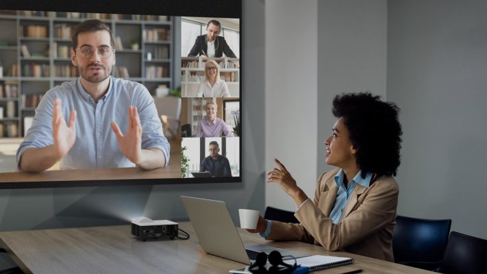 Projektor využívá pokročilou LED technologii, která nabízí živé a přesné barvy s pokrytím barevného prostoru Rec.709. To znamená, že prezentace, fotografie a videa budou vypadat věrně a přirozeně. Díky svítivosti 1 000 ANSI lumenů je obraz jasný i v místnostech s běžným osvětlením, takže není třeba projektor používat pouze v zatemněných prostorách.