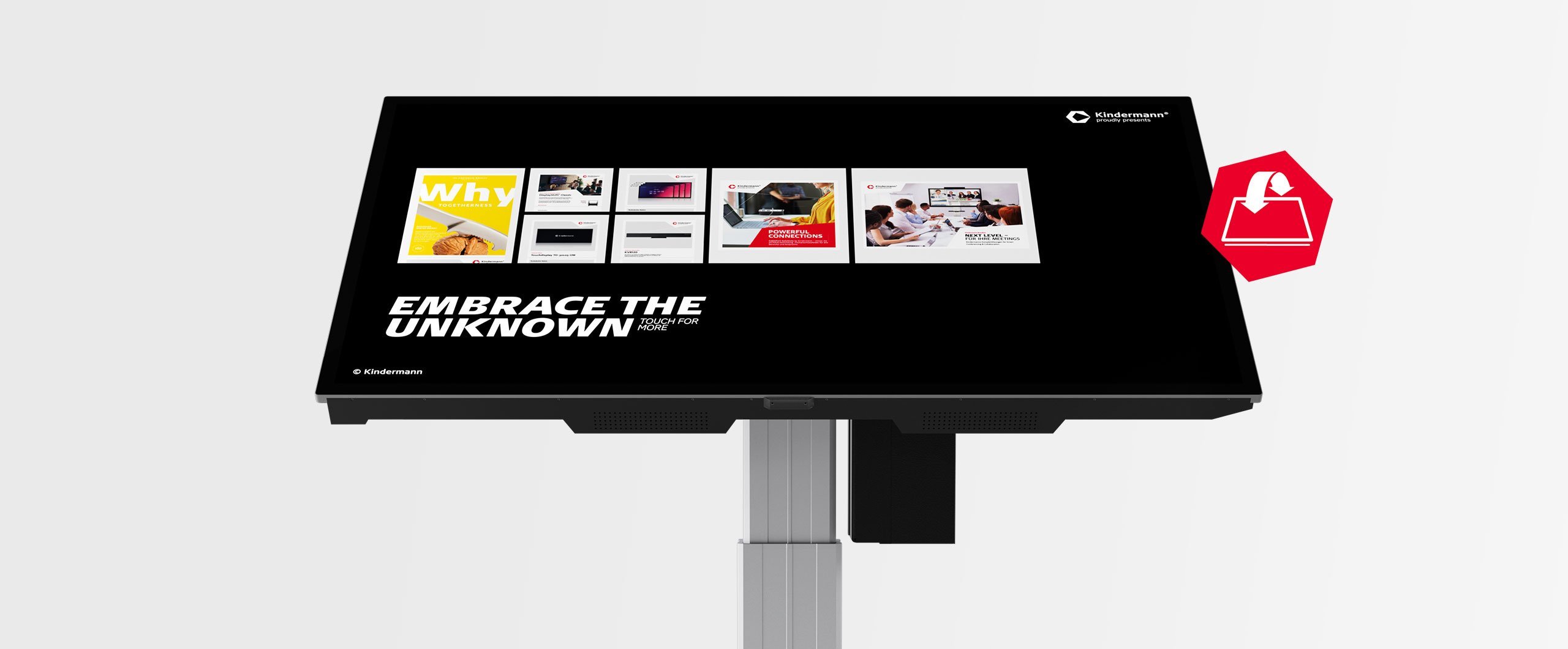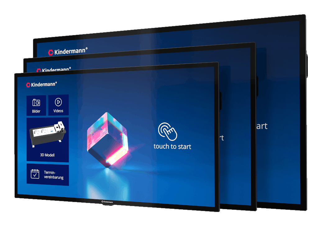 Energeticky účinné dotykové displeje, které si dlouhodobě zachovávají vysoký jas a lze je různě polohovat, včetně vodorovné polohy „interaktivního stolu“ na mobilním stojanu, uvedla na trh německá společnost Kindermann. Speciální displeje modelové řady TD-40xx jsou dostupné ve třech velikostech úhlopříček (65“, 75“ a 86“) a dodávají se s aktivním perem pro práci jako na tabletu nebo chytrém telefonu. Obsahují celou řadu slotů včetně USB-C a OPS, jsou flexibilní a neobsahují žádný operační systém, což výrazně zvyšuje bezpečnost jejich používání.