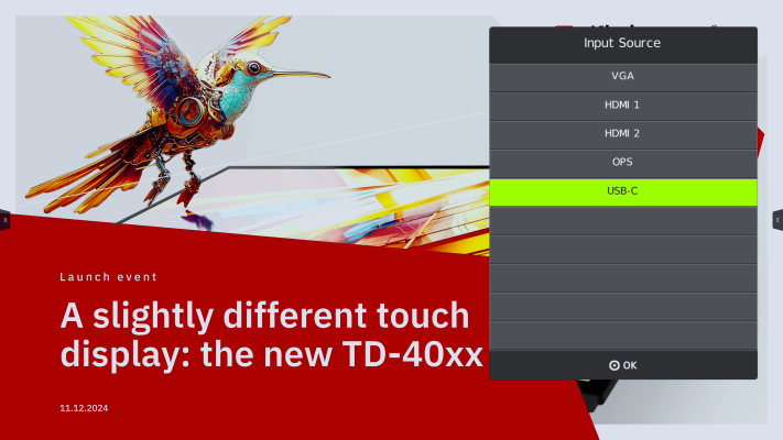Polohovací dotykové displeje TD-40xx se vyznačují dostatečným jasem i v úsporném režimu, takže je lze bez problémů používat i v prosvětlených konferenčních místnostech. Uživatelé tak nemusí využívat jejich maximální jas 600 cd/ m² a chrání životní prostředí. Displeje TD-40xx mají rozlišení 3840 x 2160 px (Ultra HD/4K), formát 16:9 a lze na nich využívat až 10 dotykových bodů najednou. Perem psané poznámky lze prostřednictvím aplikací Microsoft uložit a exportovat do klasického editovatelného textu.
