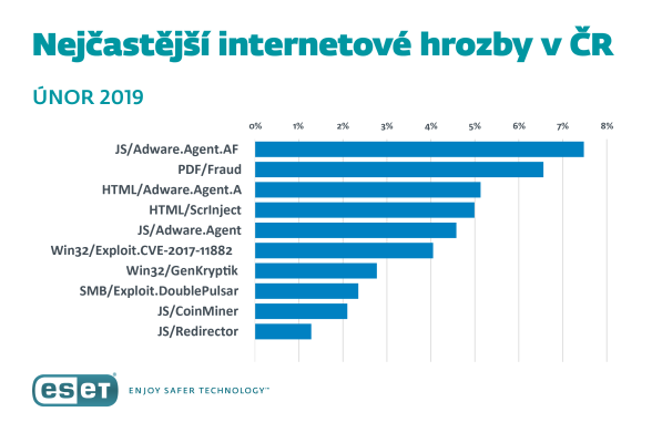 Nejčastější internetové hrozby v České republice za únor 2019: