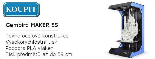 Pánové, také vás manželka za odměnu bere o víkendu do obchodu, kde za vámi zaklapnou dveře, na podlaze je napsáno start a po dvou kilometrech ostré chůze vám radostným výkřikem „už jsem to našla“ a zamáváním jedním balíčkem plastových držáků na ručníky v ruce oznámí, že můžete jít domů? Tak i takovéto držáky na ručníky jdou tisknout doma. Dobrou investicí pro začátečníky ve 3D tisku je Gembird model Finder. Stabilní konstrukce, uzavřená tisková komora s průhlednými panely, 3,5“ LCD display pro snadné nastavení, podpora PLA vlákna a možnost tisknout předměty 14 x 14 cm. To vše za velmi příjemnou cenu.