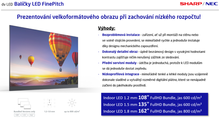 Kompletní sortiment dvLED video wall společnosti Sharp/NEC naleznete ZDE.