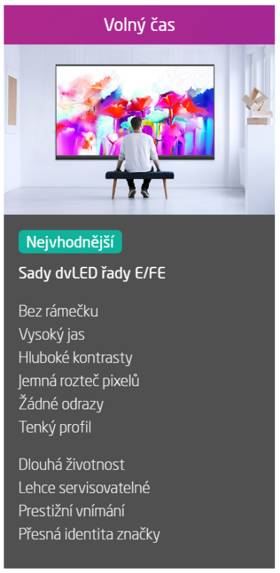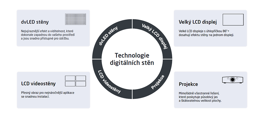 Najděte pro svou aplikaci dokonale vhodnou technologii digitální plochy. Náš poradenský servis vás provede mnoha úvahami a různými parametry.